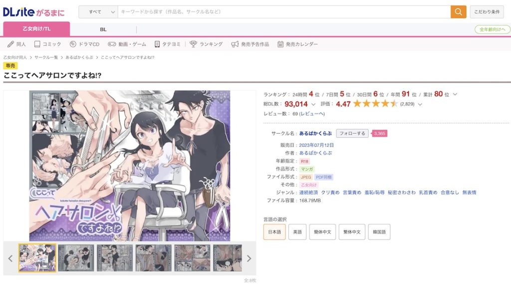 がるまにの同人界隈で誰もが知っているダウンロード数9万件を超えたモンスター漫画『ここってヘアサロンですよね!?』が読める無料アプリ・サイトはDLsiteの専売作品です。